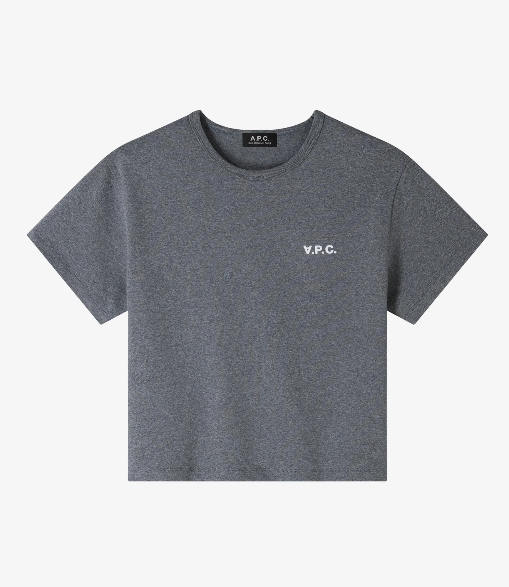 A.P.C. Women's T-shirt. - Wide boxy fit. Size down 1 if between sizes or regular fit is desired. - Boxy cut. - Crew neck. - Violet velvety flocked V.P.C. over the heart. - 100% organic cotton. Size Advice - Julie is 5'9 tall and is wearing size S. - Wide boxy fit. Size down 1 if between sizes or regular fit is desired. Composition & Material - 100% cotton. - Portuguese material. - Made in Portugal. - Machine wash cold (86°F) inside-out.
