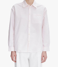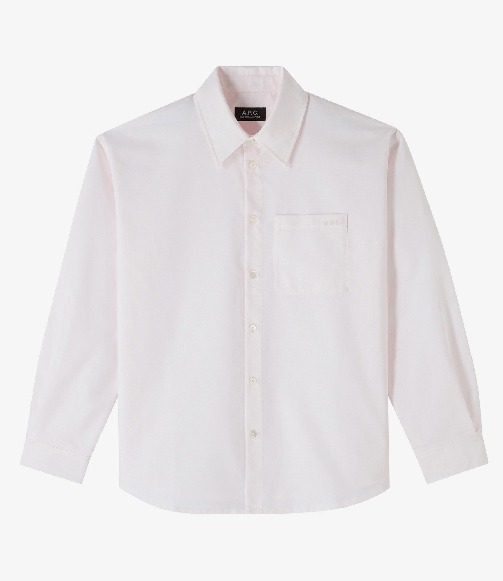 - Men's-style shirt. - Loose fit. - Classic collar. - Pocket over the heart with a tone-on-tone embroidered A.P.C. logo. - White mother-of-pearl buttons engraved A.P.C. - 100% organic cotton. Size Advice - Ireen is 5'10 tall and is wearing size 36. Composition & Material - 100% cotton. - Portuguese material. - Made in Tunisia. - Machine wash cold (86°F) inside-out.