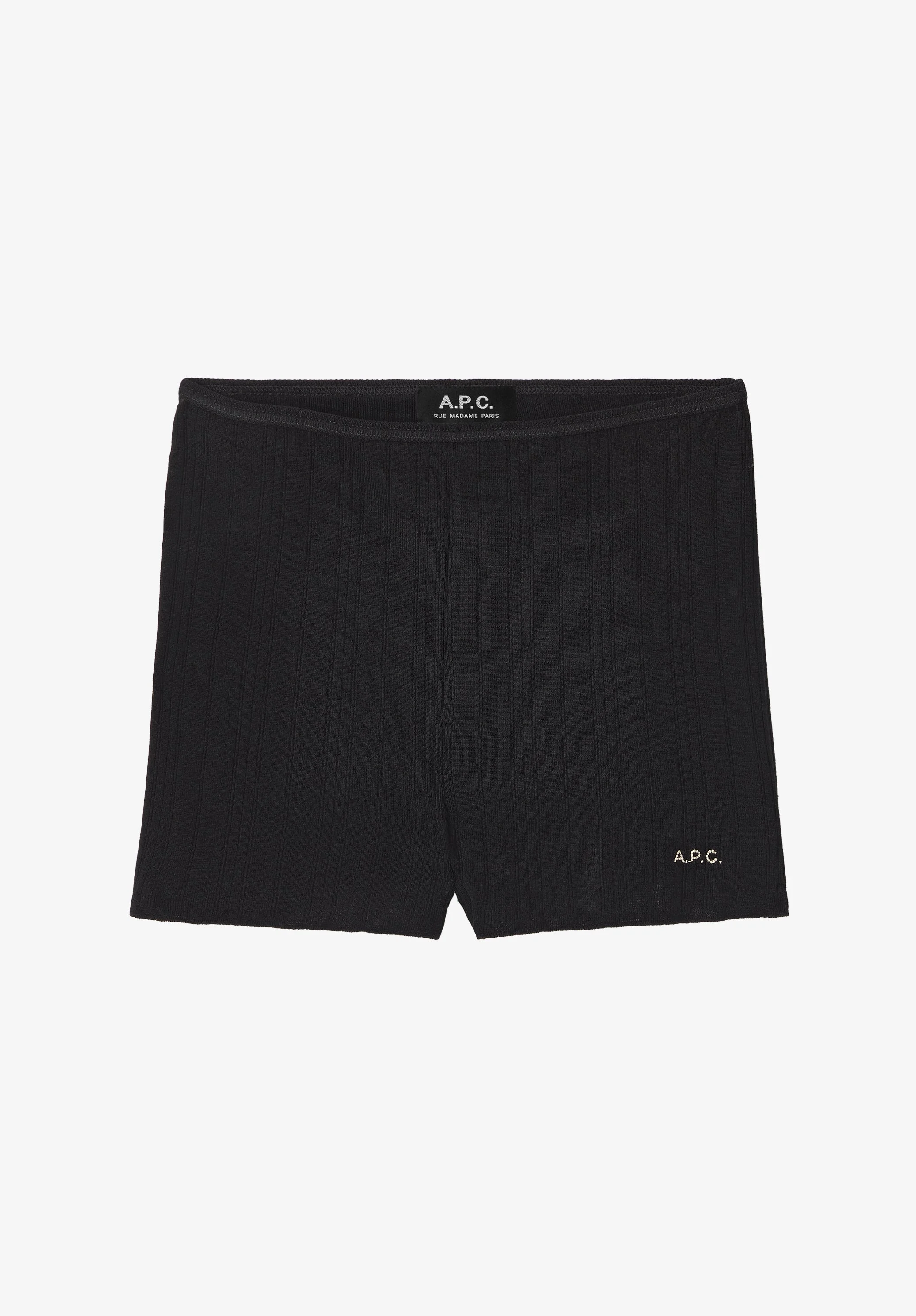 - Soft material. - Fitted cut. - Elasticated waistband. - A.P.C. embroidery on the left side. Size Advice - Simone is 5'10 tall and is wearing size S. Composition & Material - 100% cotton. - Italian material. - Made in France. - Machine wash cold (86°F) inside-out.