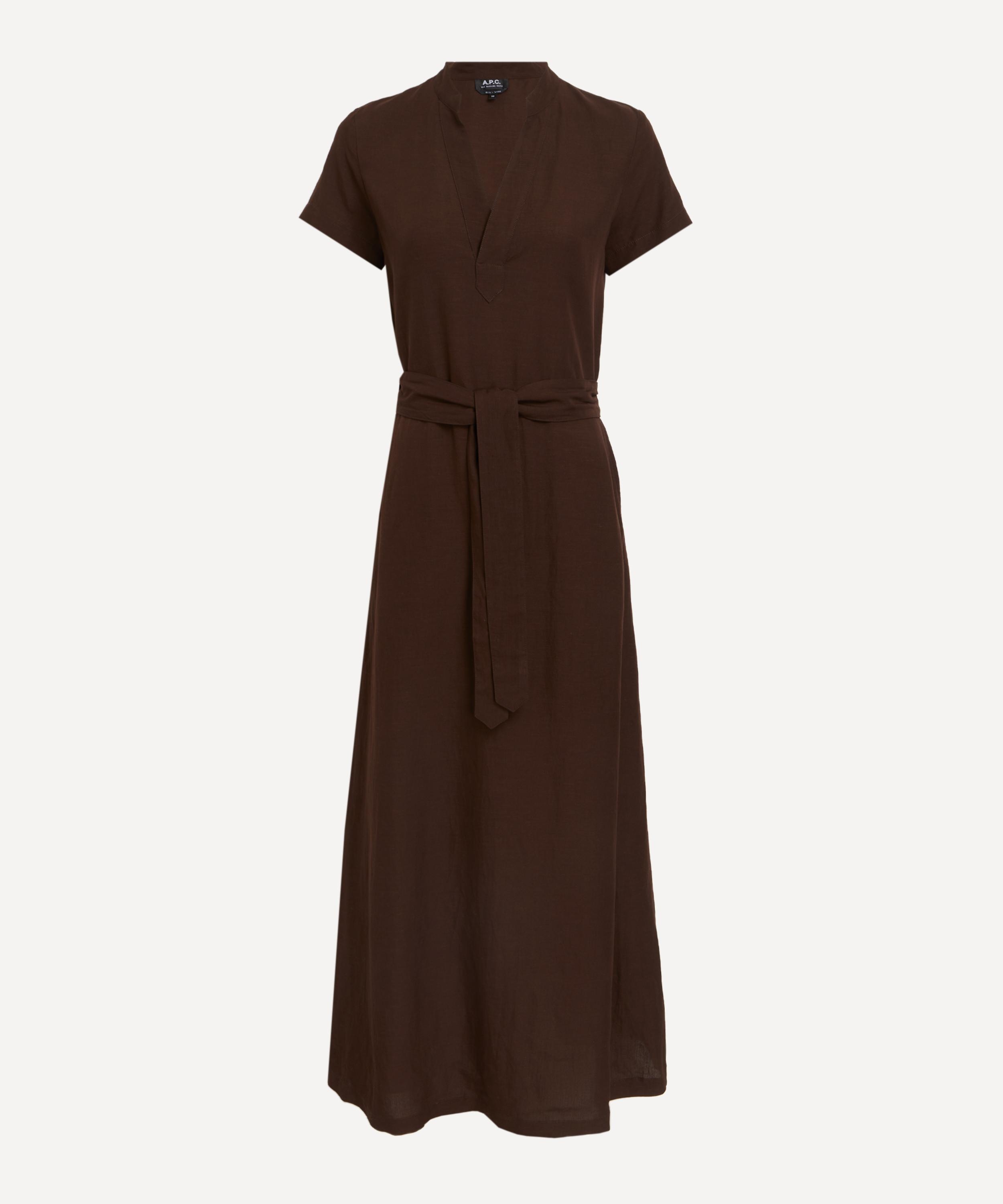 DETAILS Wrap dress Lightly textured linen-blend fabric Straight cut Ankle-length V-neckline Short sleeves Detachable waist belt A-line skirt SIZE & FIT Model is 180cm/5'11"; Chest: 82cm; Waist: 64cm; Hip: 95cm and wears a size 8 COMPOSITION & CARE 65% Viscose; 35% Linen Dry clean