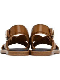 Buffed leather sandals in brown. · Open toe · Crisscrossing straps at vamp · Pin-buckle slingback strap · Stacked leather midsole · Nubuck leather sole Supplier color: Hazelnut Leather. Made in Morocco 251252F124001