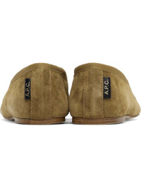 Calfskin suede ballerina flats in brown. · Elasticized strap at vamp · Grosgrain trim at collar · Logo flag at heel · Twill lining · Stacked leather heel · Nubuck leather sole Supplier color: Camel Upper: calfskin. Sole: leather. Made in Morocco 251252F118008