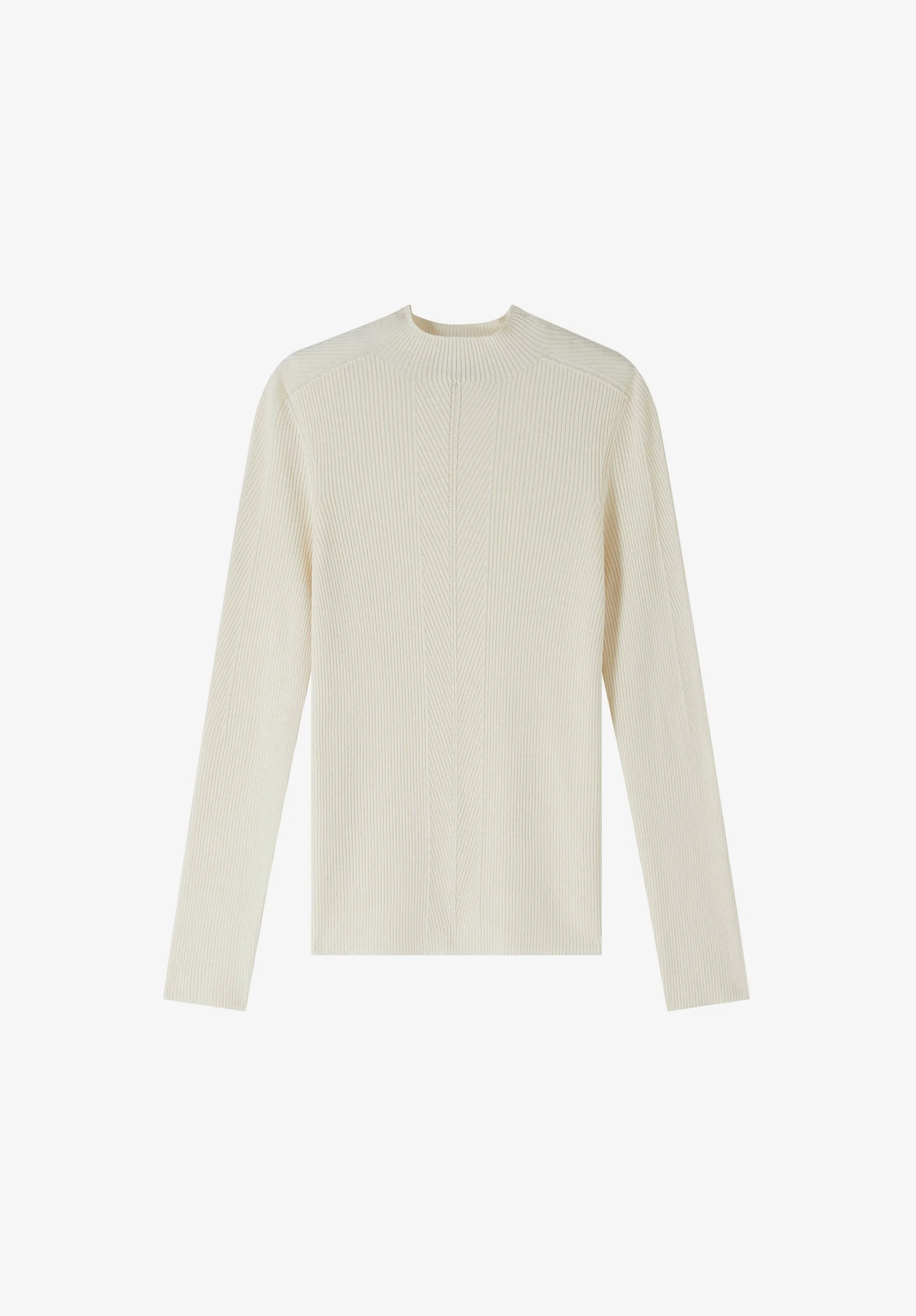 - Very soft material that is pleasant to wear. - Fitted cut. - High collar. - Openwork details in front and on sleeves. Size Advice - Julie is 5'9 tall and is wearing size S. Composition & Material - 70% silk. 20% wool. 10% cashmere. - Made in China. - Hand wash or delicate cycle.
