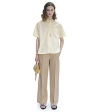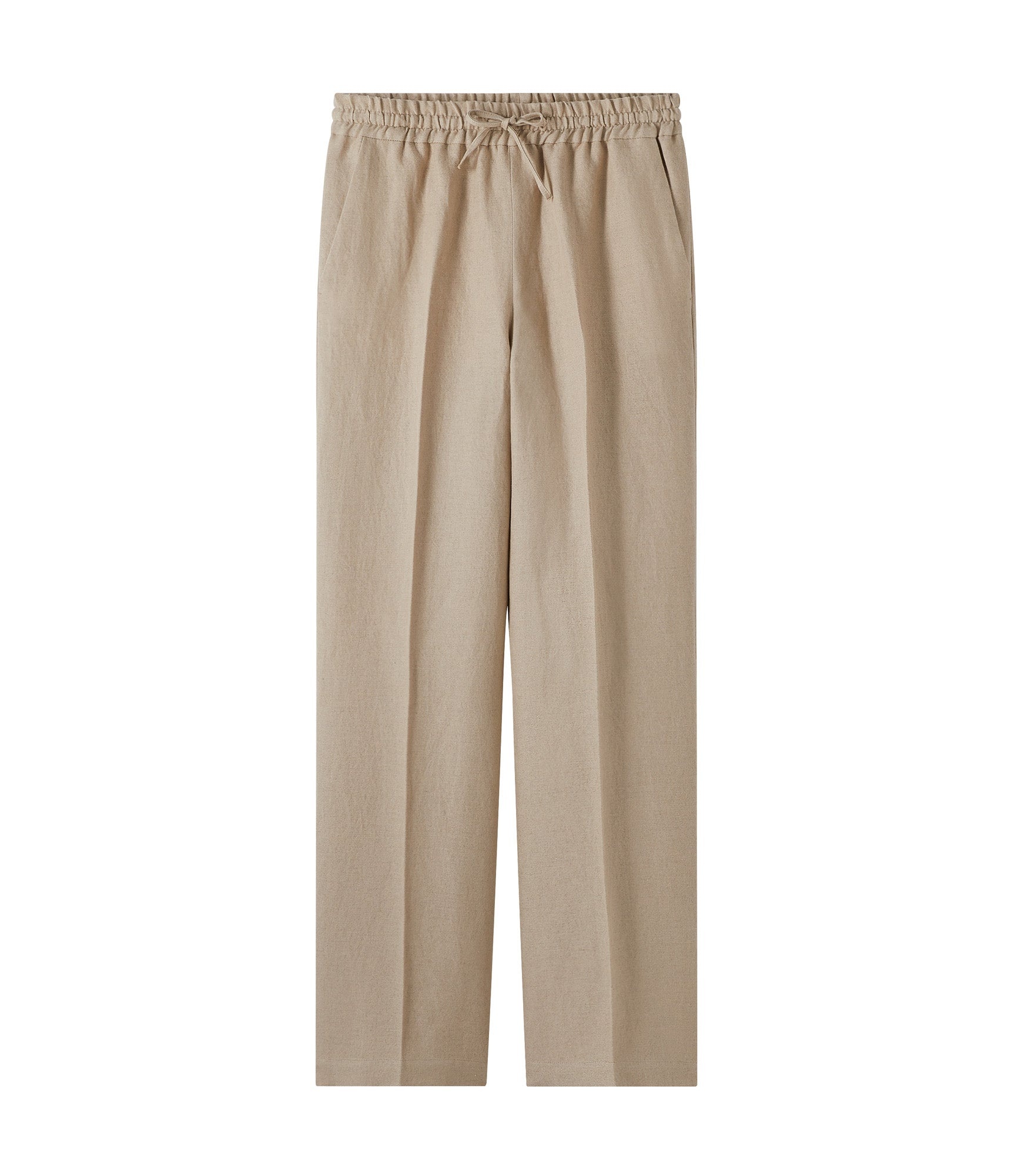 PRODUCT DETAILS - Wide leg with permanent creases, front and back. - Mid-rise. - Elasticated waist with a tone-on-tone drawstring. - Two side pockets and one back pocket. - Wear with the Katia jacket. FABRIC & CARE - 58% linen. 42% cotton. - Italian material. - Made in Bulgaria. - Dry clean. SIZE - Méline is 5'9'' tall and is wearing size 36. - This item sizes normally. We recommend that you select your usual size.