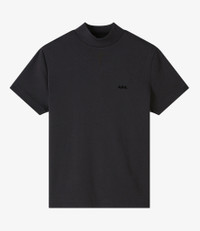 - Straight cut with a slightly loose fit. - High collar. - Short sleeves. - Tone-on-tone A.P.C. flocked over the heart. - 100% organic cotton. Size Advice - Ireen is 5'10 tall and is wearing size S. Composition & Material - 100% cotton. - Portuguese material. - Made in Portugal. - Machine wash cold (86°F) inside-out.