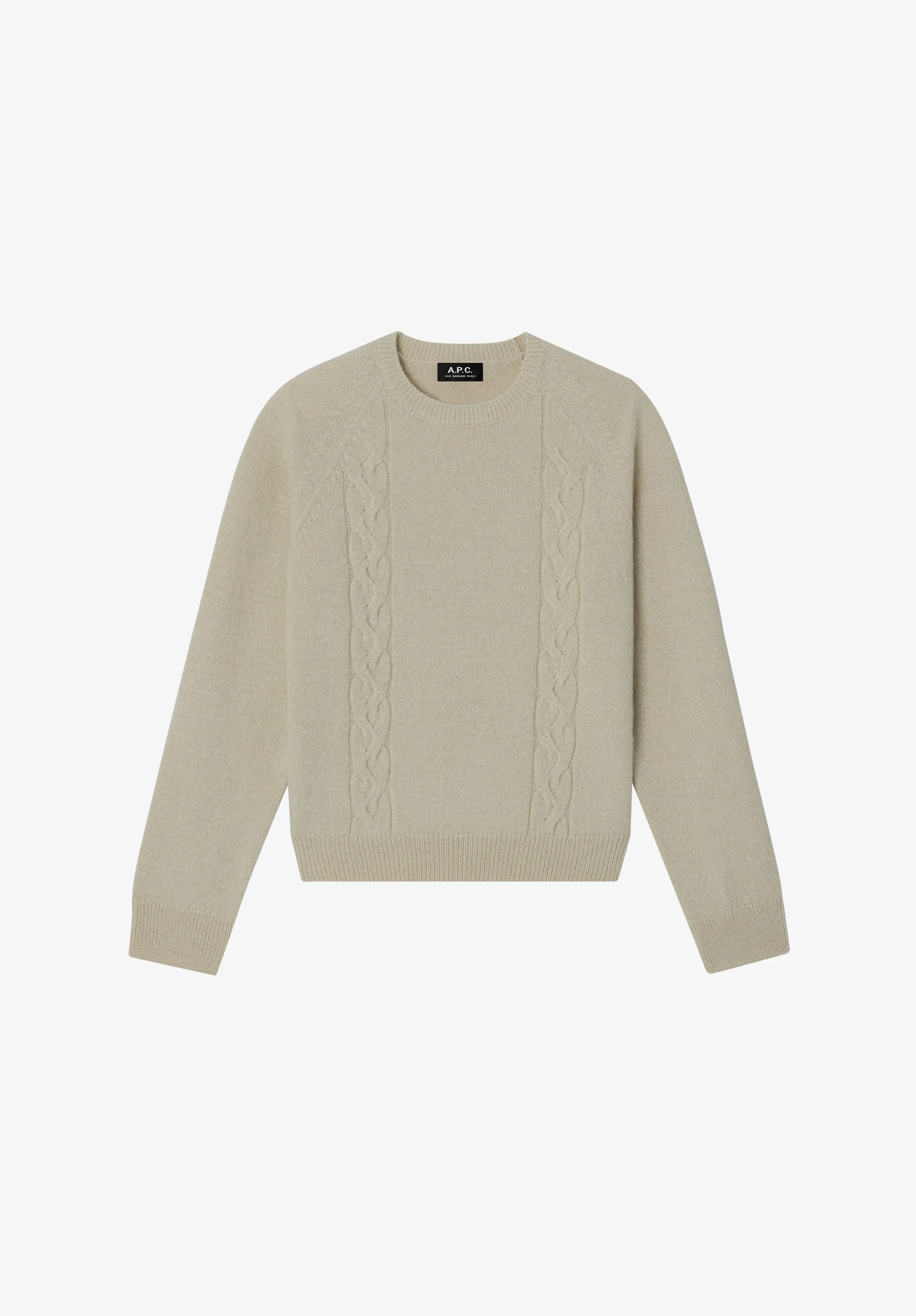 - Soft warm material. - Straight cut with a slightly loose fit. - Crew neck. - Raglan sleeves. - Two cable-knit details in front. Size Advice - Nadine is 5'9 tall and is wearing size S. Composition & Material - 100% wool. - Italian material. - Made in Turkiye. - Hand wash or delicate cycle.