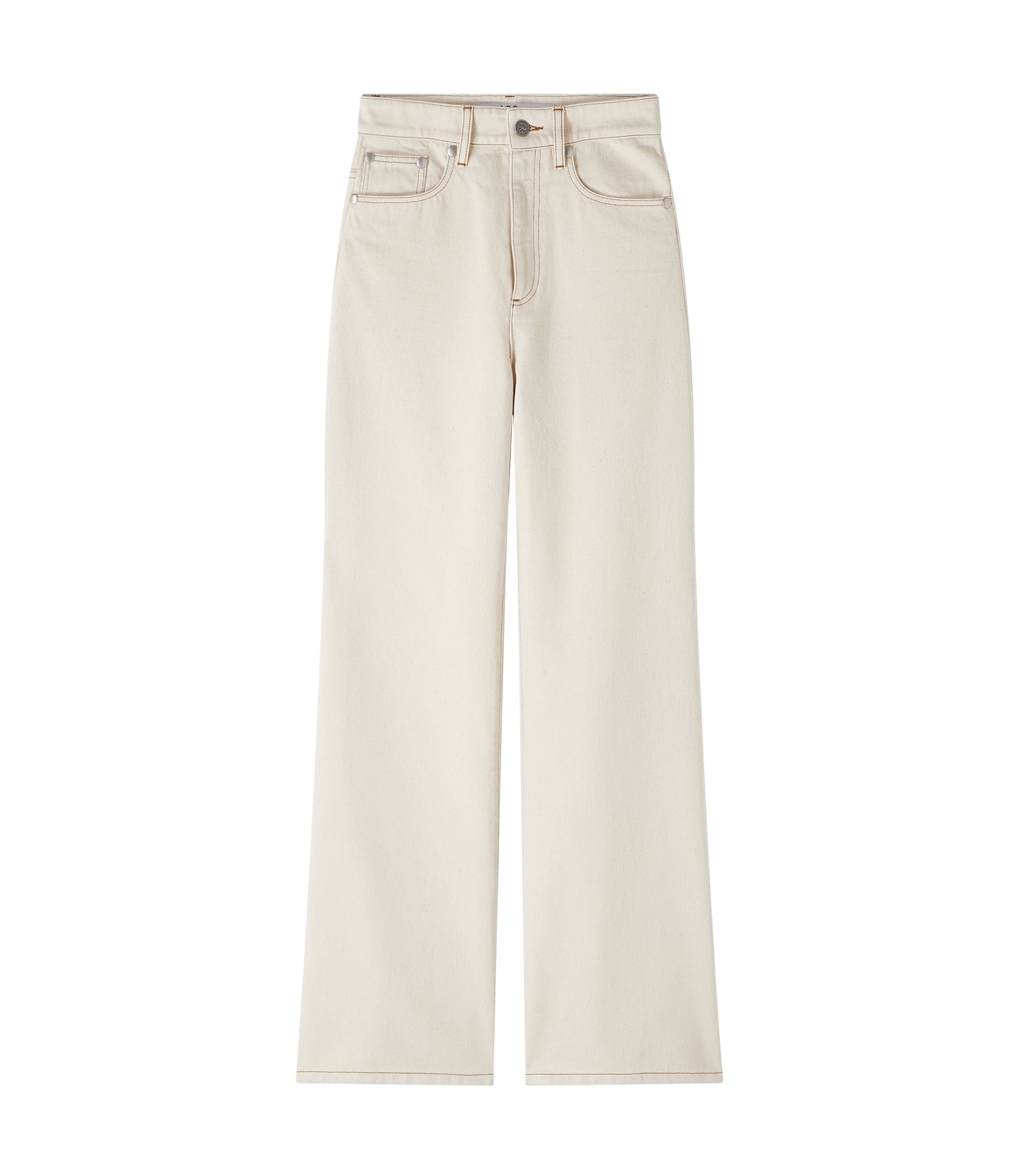 - Japanese material. - Straight cut with wide leg. - Mid-rise. - Silvertone metal rivets the signature of the line. - Permanent crease on the front of the legs and at the top in back. - Five pockets. - Zip fly. - Button engraved 'A.P.C. rue Madame près du Luxembourg'. - Caramel topstitching. Size Advice - Grace is 5'10 tall and is wearing size 26. - This item sizes normally. We recommend that you select your usual size. Composition & Material - 100% cotton. - Italian material. - Made in Portugal. - Machine wash cold (86°F) inside-out. - Gentle spin cycle. - Do not tumble dry. - The jeans may appear shrunken after washing but they return to their original shape when worn. Our commitments Through its RESPECT program A.P.C reduces (by implementing many practical measures to improve its environmental footprint) regulates (by respecting and enforcing its ethical responsibility on the part of its employees as well as its suppliers) and reuses (through its recycling vintage or quilts and butler programs for example).