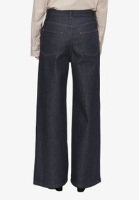 - Japanese denim material. - High rise. - Long wide leg. - Hip-hugging. - Guitar and dagger buttons. - Tone-on-tone topstitching. Size Advice - Jeanne is 5'10 tall and is wearing size 26. Composition & Material - 98% cotton. 2% polyurethane. - Japanese material. - Made in Viet Nam. - Do not dry clean. - Machine wash cold (86°F) inside-out. - Gentle spin cycle. - Do not tumble dry. - The jeans may appear shrunken after washing but they return to their original shape when worn.