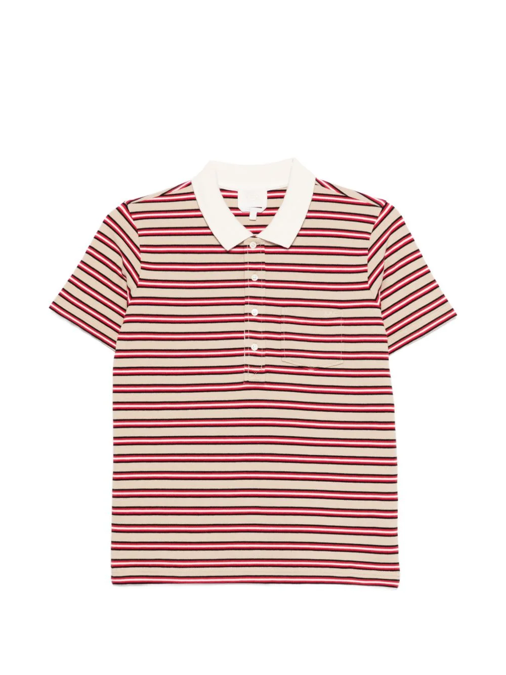 COHMZ/F26572 BAC DK BEIGE Highlights - Beige and red - Striped pattern - Point collar - Chest patch pocket - Button fastening - Short sleeves Imported Composition Organic Cotton 100% Washing instructions Machine Wash