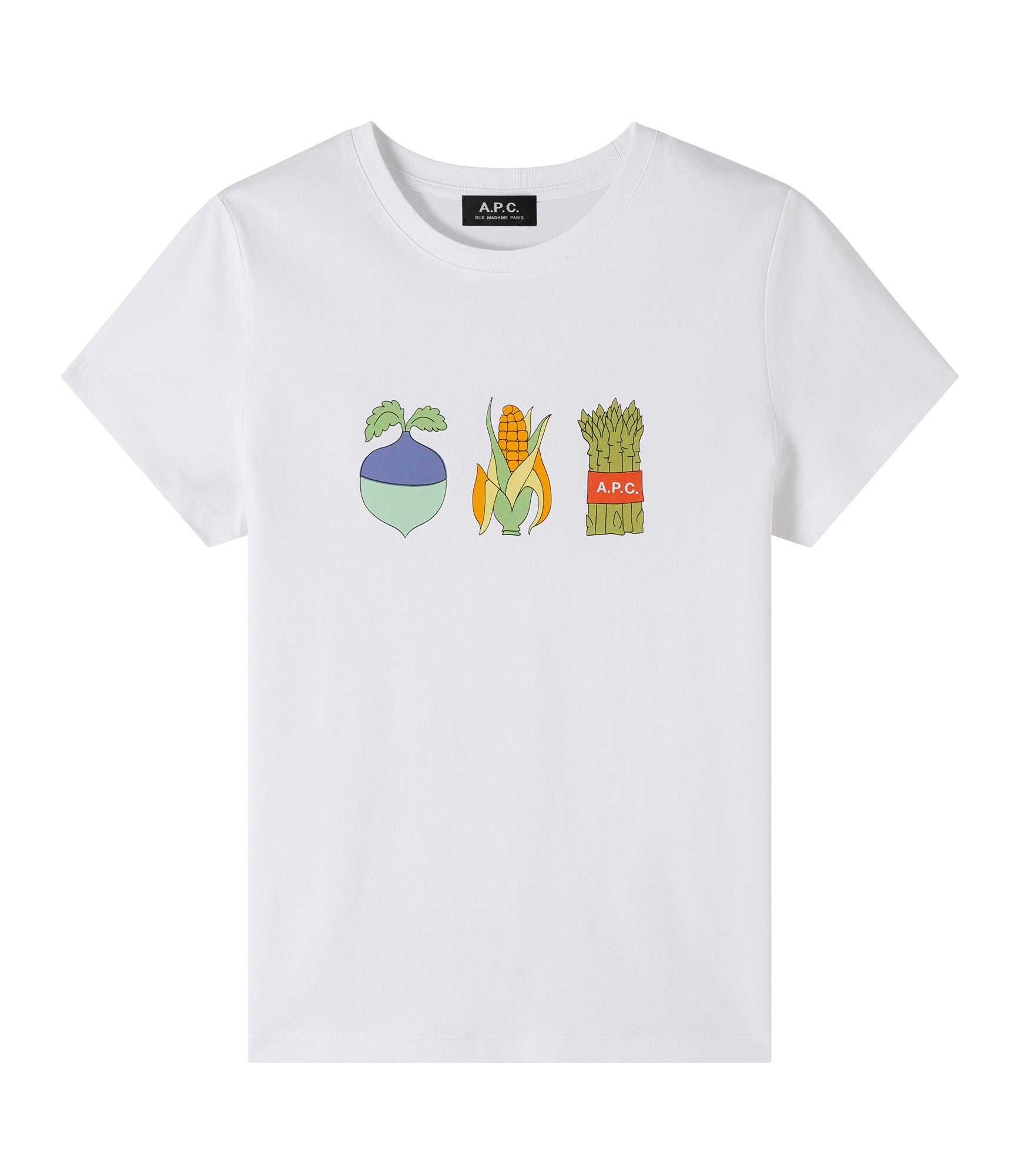 PRODUCT DETAILS - Heavyweight cotton (180 g). - Straight cut. - Crew neck. - Three vegetables silkscreened on front. - 100% organic cotton. FABRIC & CARE - 100% cotton. - Made in Turkey. - Machine wash cold (30°C), inside-out. SIZE - Julie is 5'10" tall and is wearing size S.