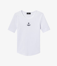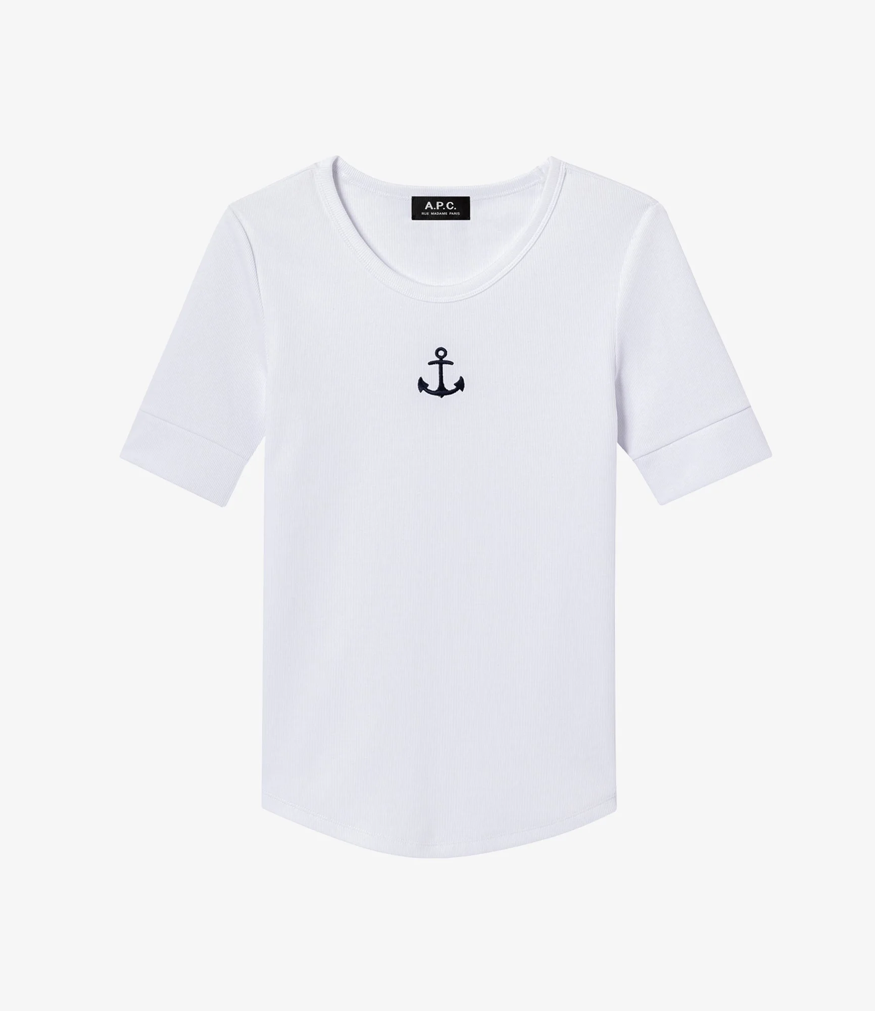 - Slightly ribbed material. - Fitted cut. - Wide neckline. - Anchor embroidered in the centre. - 95% organic cotton. Size Advice - Matilda is 5'9 tall and is wearing size S. - This item sizes normally. We recommend that you select your usual size. Composition & Material - 95% cotton. 5% elastane. - Portuguese material. - Made in Portugal. - Machine wash cold (86°F) inside-out.