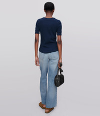 - Slightly ribbed material. - Fitted cut. - Wide neckline. - Anchor embroidered in the centre. - 95% organic cotton. Size Advice - Grace is 5'10 tall and is wearing size S. - This item sizes normally. We recommend that you select your usual size. Composition & Material - 95% cotton. 5% elastane. - Portuguese material. - Made in Portugal. - Machine wash cold (86°F) inside-out.