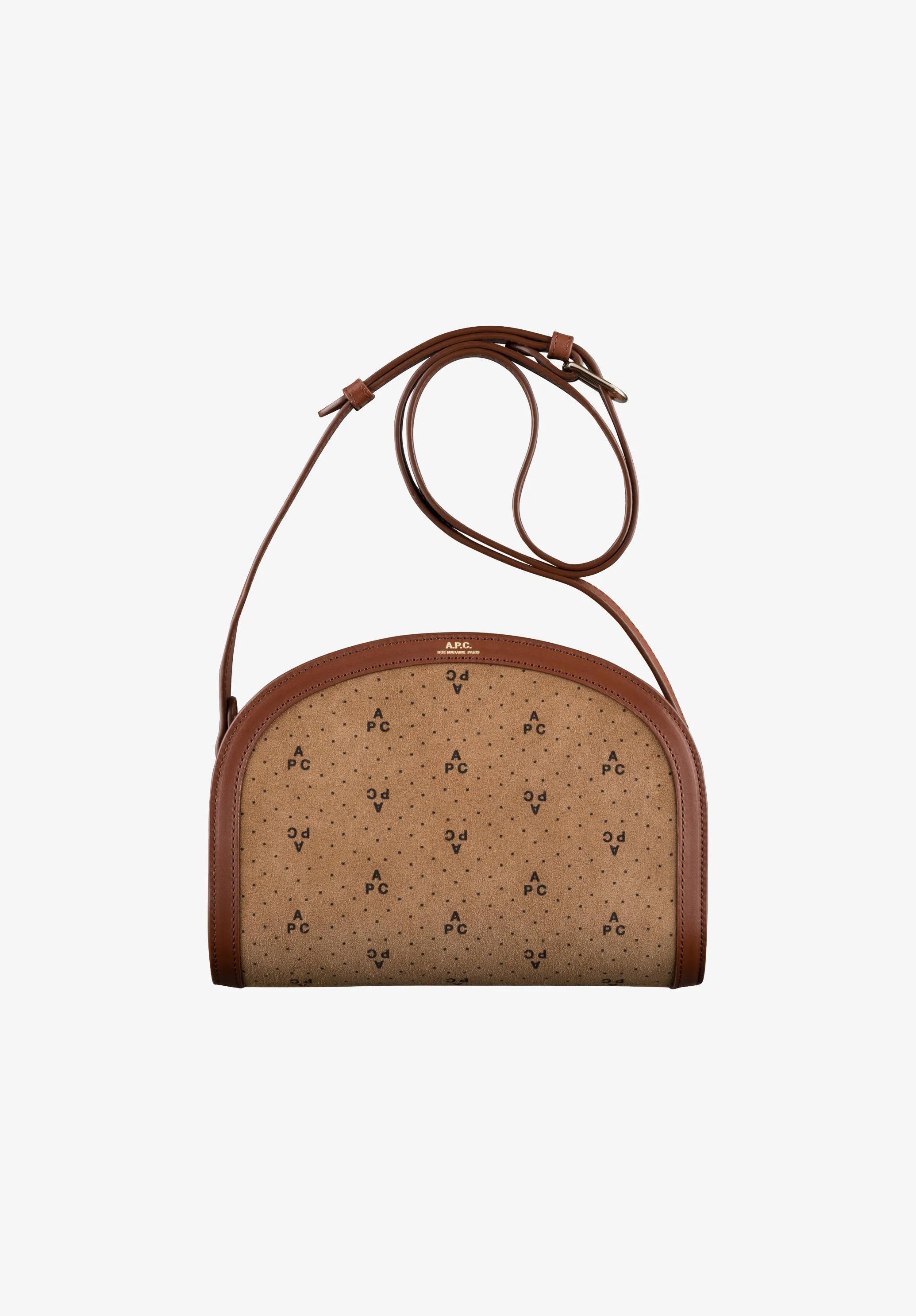 A.P.C. Women's bag. - Iconic A.P.C. bag in smooth vegetable-tanned leather. - Goldtone zip closure and double leather zip pulls. - Interior pocket. - Shoulder strap adjusts with a metal buckle. - Can be worn on the shoulder or across the chest. - Goldtone rivets on the sides. - Embossed goldtone 'A.P.C. Rue Madame Paris' logo. Size Advice - Cotton lining. - Shoulder strap: 19.7. - Dimensions: 9.4 x 7.9 x 3.3. Composition & Material - 100% lambskin. - Spanish material. - Made in Morocco. - To care for the leather brush with a suede brush.