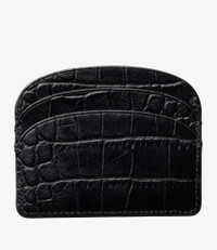 A.P.C. Women's cardholder. - Smooth cowhide leather embossed in crocodile motif. - Rounded corners. - Two-position cardholder on front and back. - Multifunction pocket inside. - Goldtone 'A.P.C. rue Madame' logo embossed on front. - Topstitched edges. Size Advice - Dimensions: 3.74 x 3.14 in. Composition & Material - 100% cowhide leather.