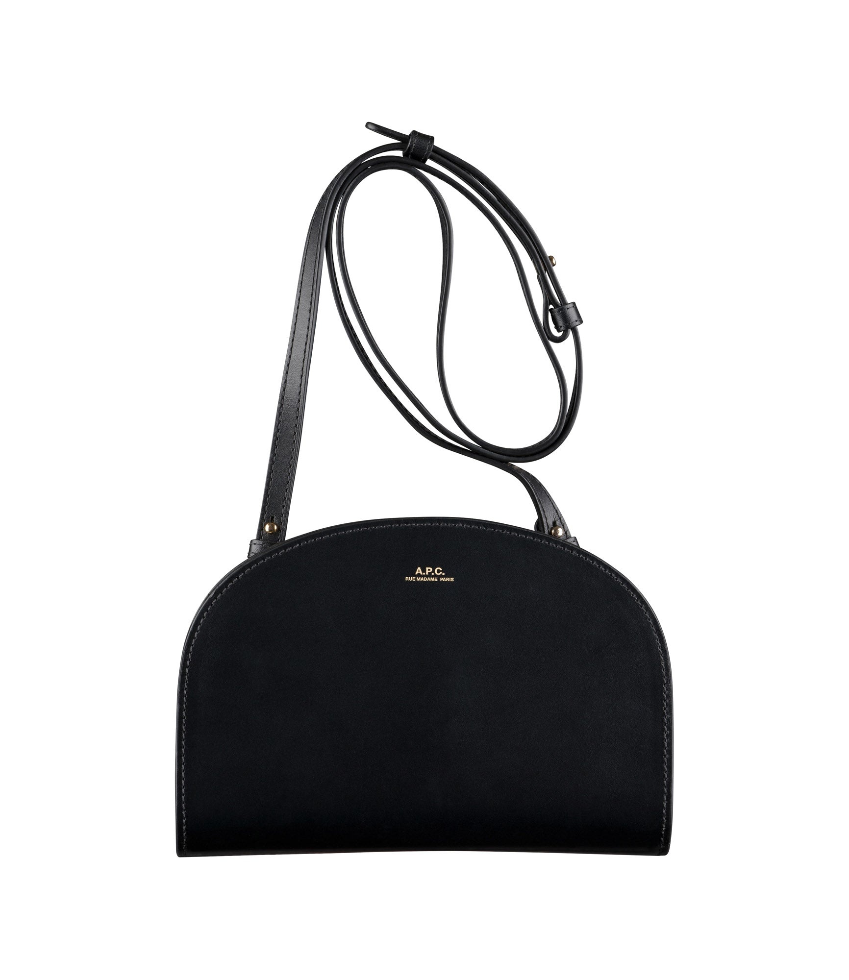 A.P.C. Women's bag. - Bag in smooth vegetable-tanned leather. - Signature rounded top of the Demi-Lune line. - Zip closure. - Interior pocket. - Shoulder strap adjusts with metal buckle. - May be carried on shoulder or across chest. - Embossed goldtone 'A.P.C. Rue Madame Paris' logo. Size Advice - Dimensions: 8.3 x 5.9 x 1.6. - Cotton lining. - In the same line as the Demi-Lune bag. Composition & Material - 100% cowhide leather. - Made in Morocco. - This vegetable-tanned leather is produced with natural tannins. - Any marks or traces developed on the leather are normal and contribute to its unique charm. Pale colours will also darken. - We recommend protecting this leather from sunlight heat and water. - Wipe clean with a soft dry cloth. Our commitments Through its RESPECT program A.P.C reduces (by implementing many practical measures to improve its environmental footprint) regulates (by respecting and enforcing its ethical responsibility on the part of its employees as well as its suppliers) and reuses (through its recycling vintage or quilts and butler programs for example).