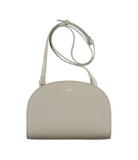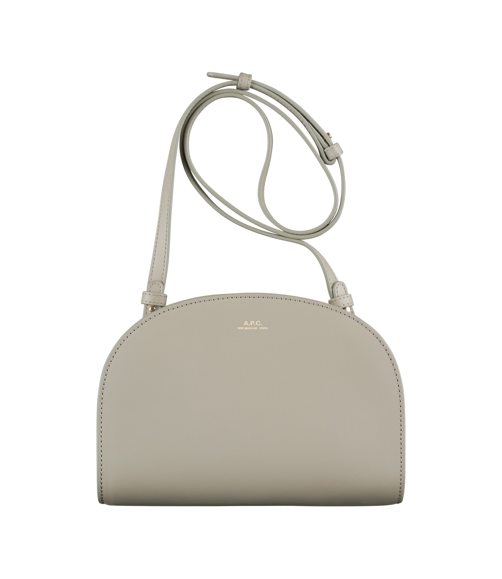 - Bag in smooth vegetable-tanned leather. - Signature rounded top of the Demi-Lune line. - Zip closure. - Interior pocket. - Shoulder strap adjusts with a metal buckle. - Can be worn on the shoulder or across the chest. - Embossed goldtone 'A.P.C. Rue Madame Paris' logo. Size Advice - Dimensions: 8.3 x 5.9 x 1.6. - Cotton lining. - In the Demi-Lune bag line. Composition & Material - 100% lambskin. - Spanish material. - Made in Morocco. - Vegetable-tanned leather is produced with natural tannins. - Marks and traces that will develop on the leather are normal and are part of its natural patina process. Light colors will darken as well. - Leather must be protected from the sun heat and water. - Care instructions: wipe with a soft dry cloth.