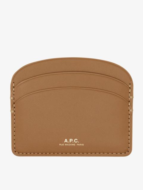 A.P.C. compact wallet. - Combination coin purse and cardholder in smooth leather with rounded shape. - Goldtone zip closures. - Zip pull engraved 'A.P.C.'. - Two card slots. - Leather and cotton lining. - Embossed goldtone 'A.P.C. Rue Madame Paris' logo. - Small version of the Demi-Lune compact wallet. Size Advice - Dimensions: 4.9 x 3.7 x 0.7. - Cardholder with a payment card format. Composition & Material - 100% cowhide leather. - Spanish material. - Made in Spain. - Vegetable-tanned leather is produced with natural tannins. - Marks and traces that will develop on the leather are normal and are part of its natural patina process. Light colors will darken as well. - Leather must be protected from the sun heat and water. - Care instructions: wipe with a soft dry cloth.