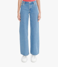 - High rise. - Envelops the hips. - Straight leg. - Guitar and dagger button. - Zip fly. - Caramel topstitching. Size Advice - Julie is 5'9 tall and is wearing size 26. Composition & Material - 100% cotton. - Egyptian material. - Made in Egypt. - Machine wash cold (86°F) inside-out. - Gentle spin cycle. - Do not tumble dry. - The jeans may appear shrunken after washing but they return to their original shape when worn.