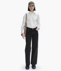 A.P.C. Women's jeans. - High rise. - Hip-hugging. - Straight leg. - 70's cut. - Button fly. - Tone-on-tone topstitching. - 20% Recycled cotton. Size Advice - Xiaodan Wu is 5'10 tall and is wearing size 26. Composition & Material - 100% Cotton. - Made in Portugal. - Machine wash 65-85°F inside-out. - Spin dry at minimum speed. - Do not tumble dry. - The jeans may appear to shrink after washing but will regain their shape when worn. Our commitments Through its RESPECT program A.P.C reduces (by implementing many practical measures to improve its environmental footprint) regulates (by respecting and enforcing its ethical responsibility on the part of its employees as well as its suppliers) and reuses (through its recycling vintage or quilts and butler programs for example).