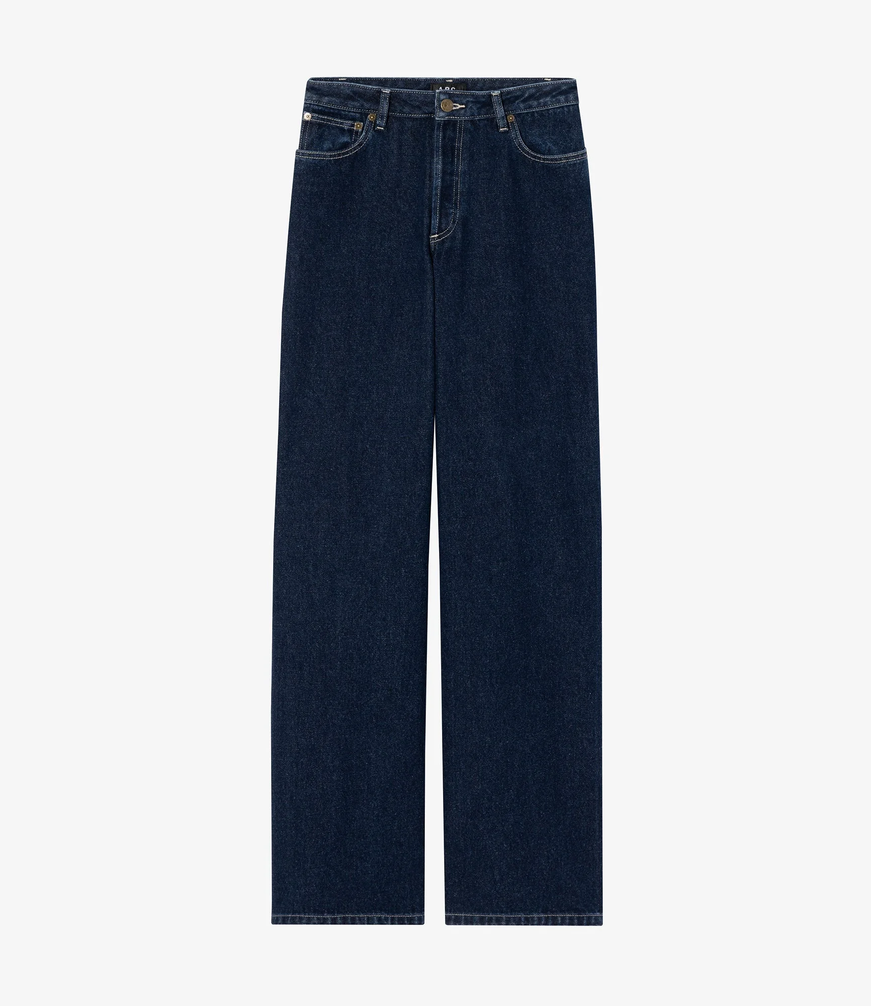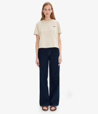 - High rise. - Envelops the hips. - Straight flared leg. - 70s cut. - Zip fly. - Ecru topstitching. Size Advice - Kelsey is 5'10 tall and is wearing size 26. Composition & Material - 100% cotton. - Made in Egypt. - Do not dry clean. - Machine wash cold (86°F) inside-out. - Gentle spin cycle. - Do not tumble dry. - The jeans may appear shrunken after washing but they return to their original shape when worn.