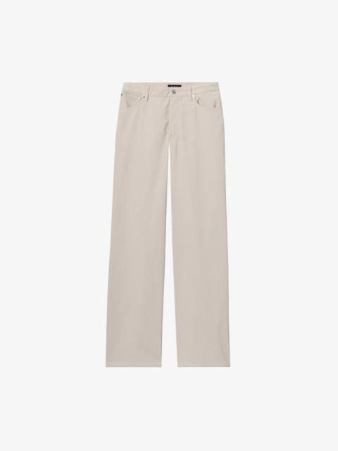 - High rise. - Envelops the hips. - Straight slightly flared leg. - 70s cut. - Zip fly. - Tone-on-tone topstitching. - 100% organic cotton. - Wear with the Mackie jacket. Size Advice - Ireen is 5'10 tall and is wearing size 26. Composition & Material - 100% cotton. - Italian material. - Made in Tunisia. - Machine wash cold (86°F) inside-out.