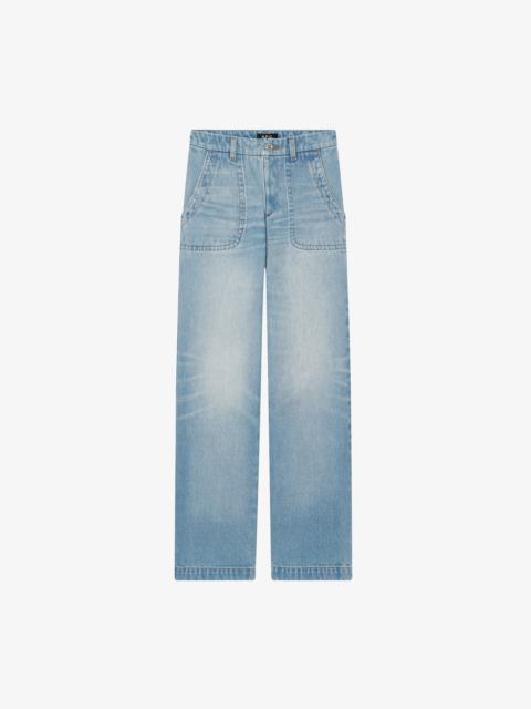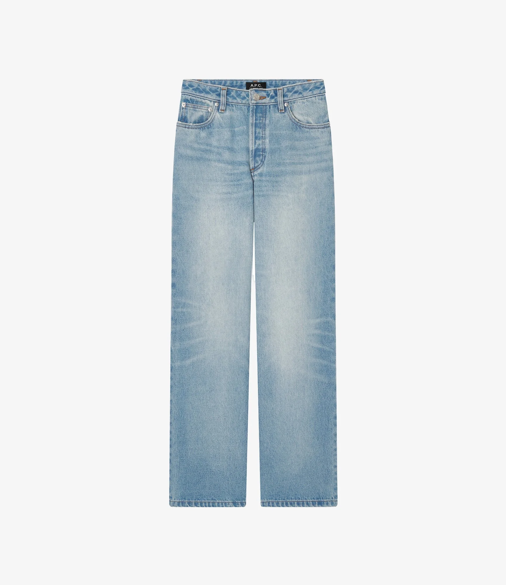 - Lightweight material. - High rise. - Envelops the hips. - Straight flared leg. - 70s cut. - Zip fly. - Caramel topstitching. Size Advice - Grace is 5'10 tall and is wearing size 26. - This item sizes normally. We recommend that you select your usual size. Composition & Material - 100% cotton. - Made in Egypt. - Do not dry clean. - Machine wash cold (86°F) inside-out. - Gentle spin cycle. - Do not tumble dry. - The jeans may appear shrunken after washing but they return to their original shape when worn.