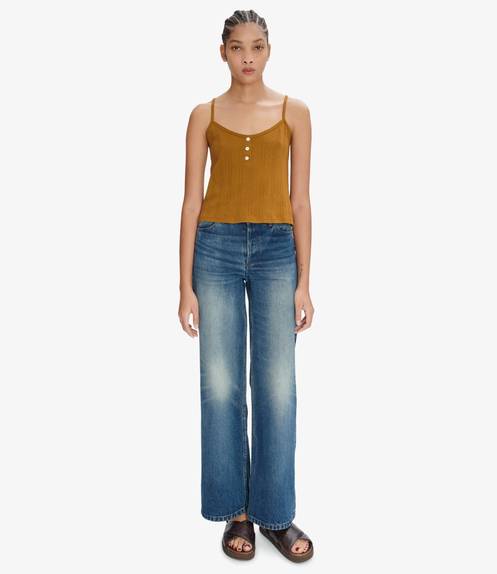 A.P.C. Women's jeans. - Fits very slim in the hips compared to our usual jeans. Please size up 2 sizes for regular fit. - High waist. - Hip-hugging. - Straight wide leg. - 70's cut. - Zipped fly. - Tone-on-tone topstitching. - Made from 100% organic cotton. Size Advice - Licett is 5'10 tall and is wearing size 26. - Fits very slim in the hips compared to our usual jeans. Please size up 2 sizes for regular fit. Composition & Material - 100% cotton. - Egyptian material. - Made in Egypt. - Machine wash cold (86°F) inside-out.