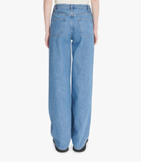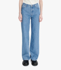 - High rise. - Envelops the hips. - Straight slightly flared leg. - 70s cut. - Zip fly. - Caramel topstitching. - 100% organic cotton. Size Advice - Ireen is 5'10 tall and is wearing size 26. Composition & Material - 100% cotton. - Italian material. - Made in Portugal. - Do not dry clean. - Machine wash cold (86°F) inside-out. - Gentle spin cycle. - Do not tumble dry. - The jeans may appear shrunken after washing but they return to their original shape when worn.