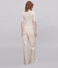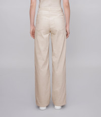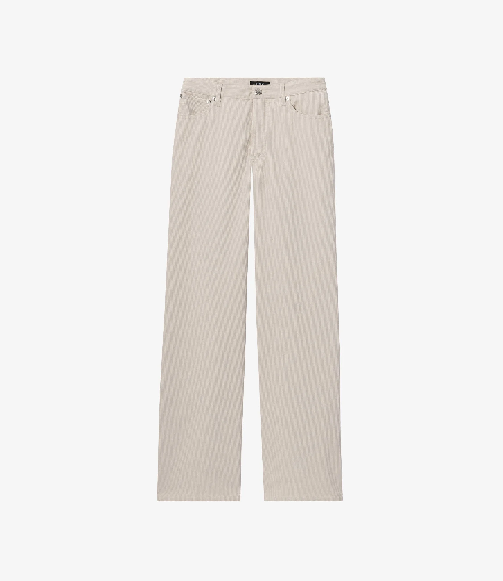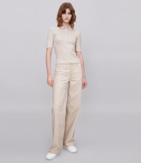 - High rise. - Envelops the hips. - Straight flared leg. - 70s cut. - Zip fly. - Tone-on-tone topstitching. Size Advice - Matilda is 5'9 tall and is wearing size 26. - This item sizes normally. We recommend that you select your usual size. Composition & Material - 100% cotton. - Italian material. - Made in Tunisia. - Dry clean only.