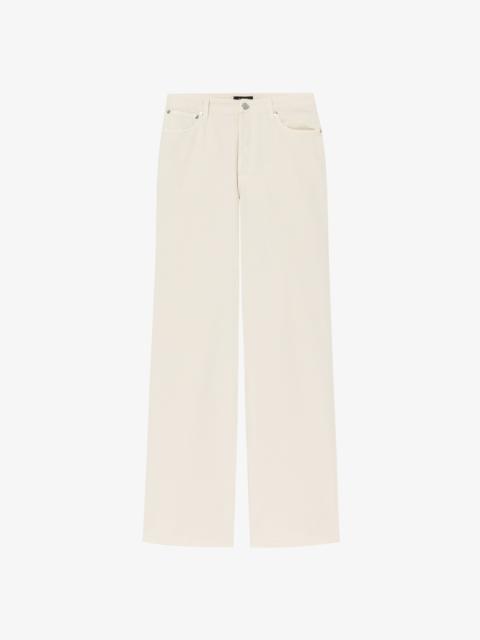 - High rise. - Envelops the hips. - Straight wide leg. - 70s cut. - Zip fly. - Tone-on-tone topstitching. - 100% organic cotton. Size Advice - Licett is 5'10 tall and is wearing size 26. Composition & Material - 100% cotton. - Spanish material. - Made in Tunisia. - Do not dry clean. - Machine wash cold (86°F) inside-out. - Gentle spin cycle. - Do not tumble dry. - The jeans may appear shrunken after washing but they return to their original shape when worn.