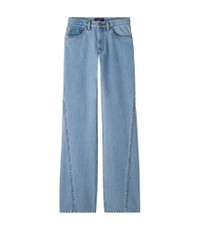 PRODUCT DETAILS - Fitted cut. - Long, flared leg designed to be worn with heels. - Inset flares the leg from above the knee to the hem. - Zip fly. - Button engraved 'A.P.C. rue Madame près du Luxembourg'. - Caramel-colored topstitching. FABRIC & CARE - 100% Cotton. - Made in Egypt. - Egyptian material. - Machine wash 65-85°F, inside-out. - Spin dry at minimum speed. - Do not tumble dry. - The jeans may appear to shrink after washing, but will regain their shape when worn. SIZE - Rosa is 5'10" tall and is wearing size 26. - This style fits true to size; choose your usual size.