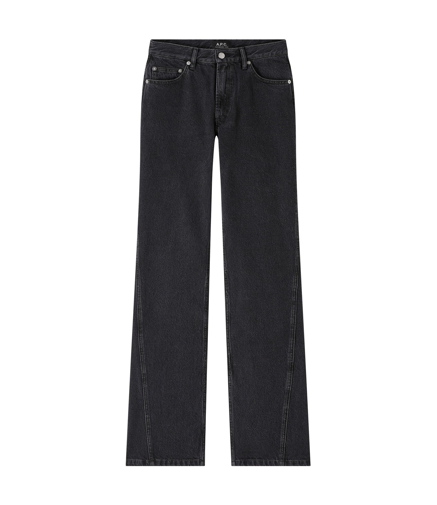 A.P.C. Women's jeans. - Fitted cut. - Long flared leg designed to be worn with heels. - Inset flares the leg from above the knee to the hem. - Zip fly. - Button engraved 'A.P.C. rue Madame près du Luxembourg'. - Caramel-colored topstitching. Size Advice - This model fits true to size; choose your usual size. Composition & Material - 80% cotton. 20% cotton recycle. - Made in Portugal. - Machine wash cold ((86°F)) inside-out. - Spin dry at minimum speed. - Do not tumble dry. - These jeans may seem shrunken after washing but they return to their original shape when worn. Our commitments Through its RESPECT program A.P.C reduces (by implementing many practical measures to improve its environmental footprint) regulates (by respecting and enforcing its ethical responsibility on the part of its employees as well as its suppliers) and reuses (through its recycling vintage or quilts and butler programs for example).