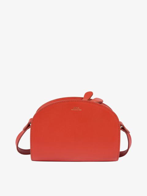 PRODUCT DETAILS - Bag in smooth vegetable-tanned leather. - Goldtone zip closure. - Interior pocket. - Reinforced leather base. - Leather shoulder strap can be removed with a metal buckle to carry the bag on the shoulder or across the chest. - Can be carried by hand with the handles. - Goldtone lock engraved with the 'A.P.C.' logo. - Embossed goldtone 'A.P.C. Rue Madame Paris' logo. FABRIC & CARE - 100% leather. - Spanish material. - Made in Morocco. - Vegetable-tanned leather is produced with natural tannins. - Marks and traces that will develop on the leather are normal and are part of its natural patina process. Light colors will darken as well. - Leather must be protected from the sun, heat and water. - Care instructions: wipe with a soft, dry cloth. SIZE - Cotton lining. - Dimensions: 6.5 x 4.3 x 3.3" - Mini version of the Emma bag.