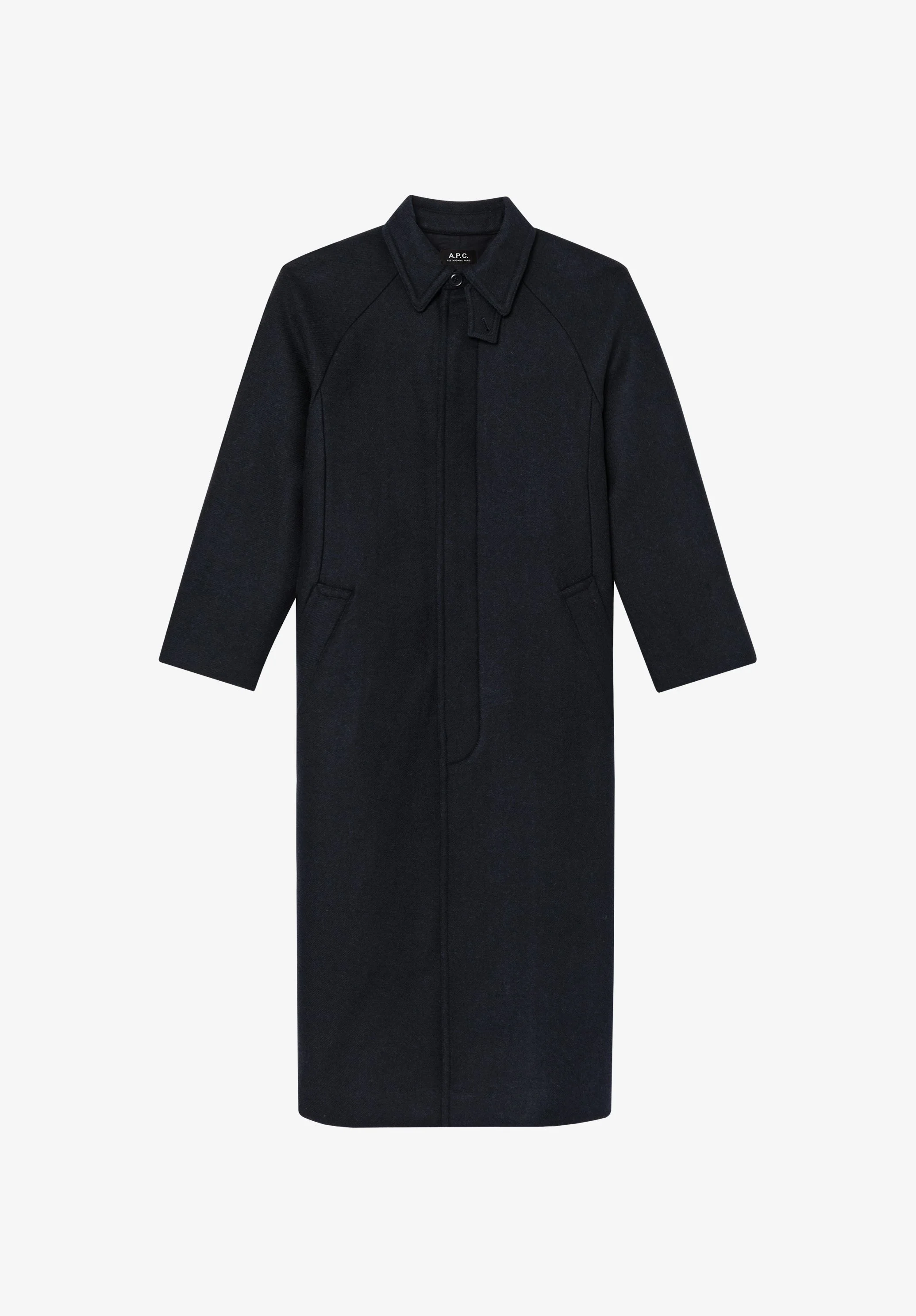 - Straight cut. - Mid-calf length. - Classic collar with buttoned flap. - Raglan sleeves. - Two side pockets. - Hidden buttoning. - Buttoned back vent. Size Advice - Nadine is 5'9 tall and is wearing size 36. Composition & Material - 75% wool. 25% polyamide. - Italian material. - Made in Romania. - Dry clean only.