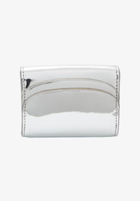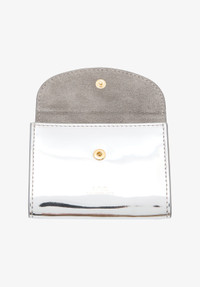 - Cardholder in metallised silvertone canvas. - Snap flap closure. - Three card slots and one pocket inside. - Two card slots in back. - Small embossed goldtone A.P.C. Rue Madame Paris logo. Size Advice - Tone-on-tone cotton lining. - Dimensions: 4.1 x 3.1. - Cardholder with a credit card format. Composition & Material - 59% polyurethane. 41% polyester. - Italian material. - Made in Spain. - Care instructions: wipe with a soft dry cloth.