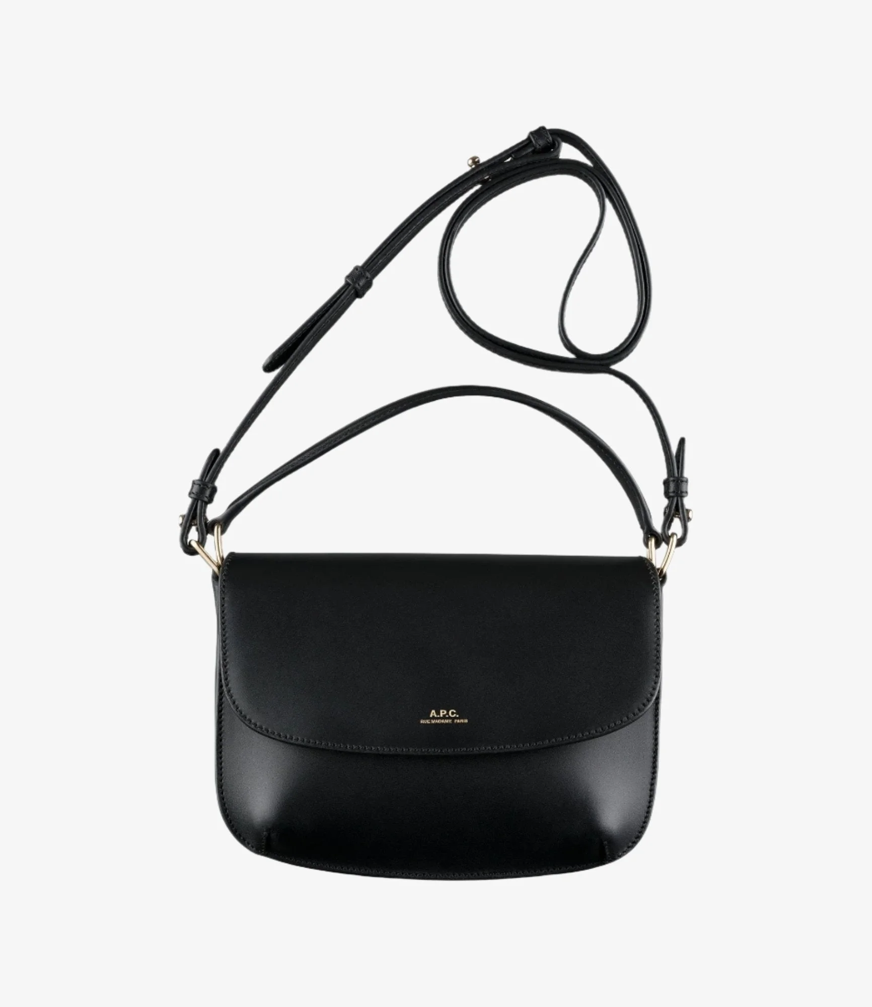 A.P.C. Women's bag. - Bag in smooth vegetable-tanned leather. - Superior quality cowhide leather. - Magnetic snap flap closure. - Adjustable shoulder strap to carry on shoulder or across chest detachable for hand-carrying with handle. - Convex rounded corners. - Two compartments. - Interior pocket. - Embossed goldtone 'A.P.C. Rue Madame Paris' logo. Size Advice - Dimensions: 7.7 x 5.5 inches. - Strap: 19.7 inches. - Inspired by the Sarah bag small version of the Sarah Shoulder a Strap bag. Composition & Material - 100% leather. - Spanish material. - Made in Morocco. - Vegetable-tanned leather is produced with natural tannins. - Marks and traces that will develop on the leather are normal and are part of its natural patina process. - Light colors will darken as well. - Leather must be protected from the sun heat and water. - Care instructions: wipe with a soft dry cloth.