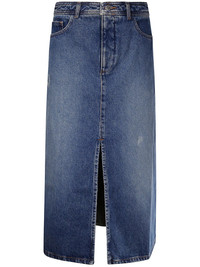 Georgia denim skirt Highlights - Indigo blue - Concealed fly and button fastening - Classic five pockets - Distressed effect Imported Composition Cotton 100% SIZE & FIT FittingInformation This midi-length skirt is intended to be worn just below the waist Sturdy and hard-wearing, this denim piece offers no stretch Washing instructions Read Manufacturer Guidelines