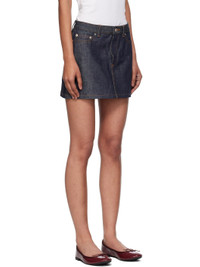 Non-stretch denim miniskirt. · High-rise · Belt loops · Three-pocket styling · Zip fly · Contrast stitching in tan Supplier color: Indigo 100% cotton. Made in Viet Nam 252252F090004