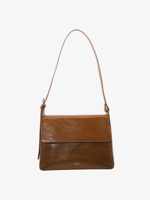 *Leather bag inspired by chic vintage bags in a small format. - Supple cowhide leather. - Adjustable leather shoulder strap. - Can be worn on the shoulder or across the chest. - Goldtone hardware clasp. - Flap lining in cowhide suede split. - One large compartment. - Two large pockets. - Two goldtone rings on the sides. - Embossed goldtone A.P.C. Rue Madame Paris logo. Size Advice - Cotton lining. - Dimensions: 21 x 17 x 5 cm. - Adjustable shoulder strap: 36 cm and 49 cm. - Smaller version of the Grace bag and bigger version of the Grace Mini bag. Composition & Material - 100% cowhide leather. - Italian material. - Made in Morocco. - Care instructions: wipe with a soft dry cloth. - Avoid poor weather conditions which can potentially damage the leather.