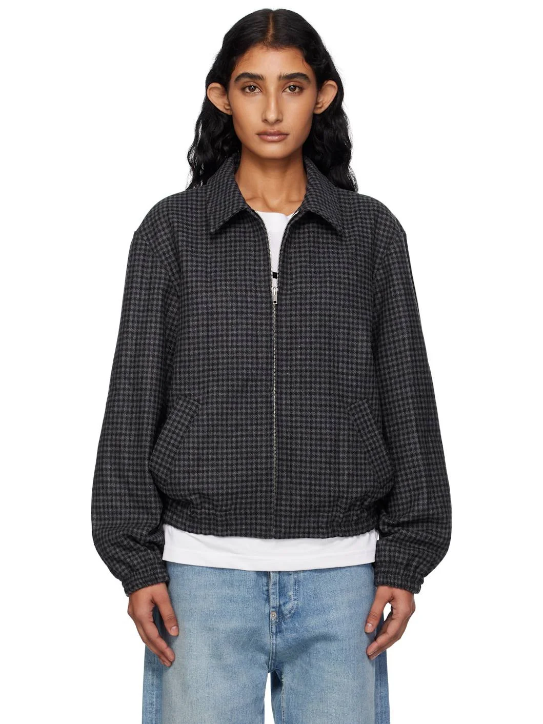 Wool-blend houndstooth tweed jacket. · Spread collar · Zip closure · Logo embroidered at chest · Welt pockets · Elasticized cropped hem and cuffs · Full viscose twill lining Supplier color: Anthracite Body: 75% wool, 25% polyamide. Made in Romania 252252F063004