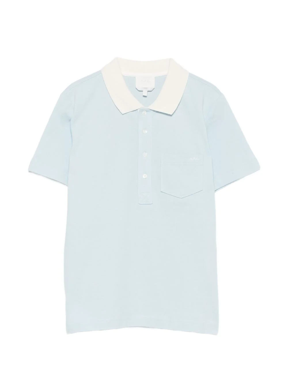 half-button polo top Highlights - Sky blue - Point collar - Button placket - Chest pocket - Short sleeves Imported Composition Cotton 100% Washing instructions Machine Wash