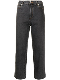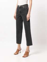 high-rise cropped jeans dark grey cotton dark wash high waist cropped leg front button fastening classic five pockets Imported Composition Cotton 100% SIZE & FIT Model measurements Height 5 ft 9 in(1.76 m) Bust/Chest 29.13 in(74 cm) Hips 33.07 in(84 cm) Waist 22.83 in(58 cm) FittingInformation This piece fits true to size. We recommend you get your regular size Designed to be fitted at the waist, loose over the leg Made with a mid-weight fabric Washing instructions Machine Wash