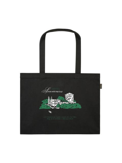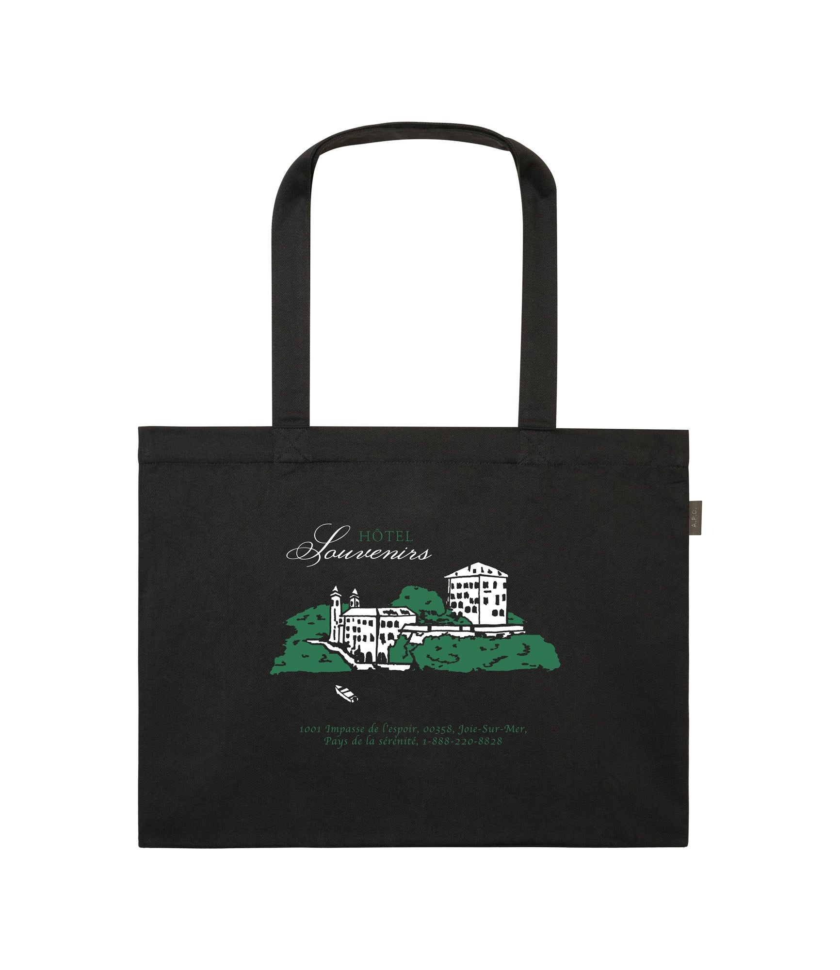 A.P.C. x JJJJound tote bag. - Unisex model. - Two large handles to carry the bag by hand or on the shoulder. - One inside pocket. - Hotel Souvenirs screenprint on one side and A.P.C. on the other. - A.P.C. JJJJound label on the side. - 100% organic cotton. Size Advice - Dimensions: 45 x 35.5 x 5.51 . Composition & Material - 100% cotton. - Made in Bulgaria.