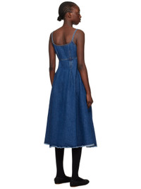Stonewashed non-stretch denim dress. Subtle fading throughout. · Square neck · Button closure · Darts at chest · Inverted box pleats at front and back · Frayed edge at flared hem · Seam pockets · Contrast stitching in tan Supplier color: Washed indigo 100% cotton. Made in Egypt 241252F054001