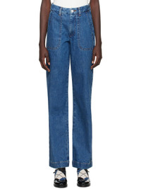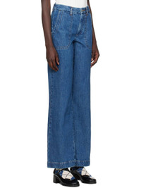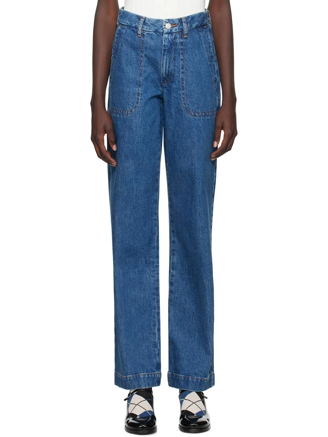 Wide straight-leg stonewashed and non-stretch denim jeans. Fading throughout. · High-rise · Belt loops · Four-pocket styling · Zip-fly · Contrast stitching in tan · Logo-engraved silver-tone hardware Supplier color: Washed indigo 100% cotton. Made in Viet Nam 242252F069002