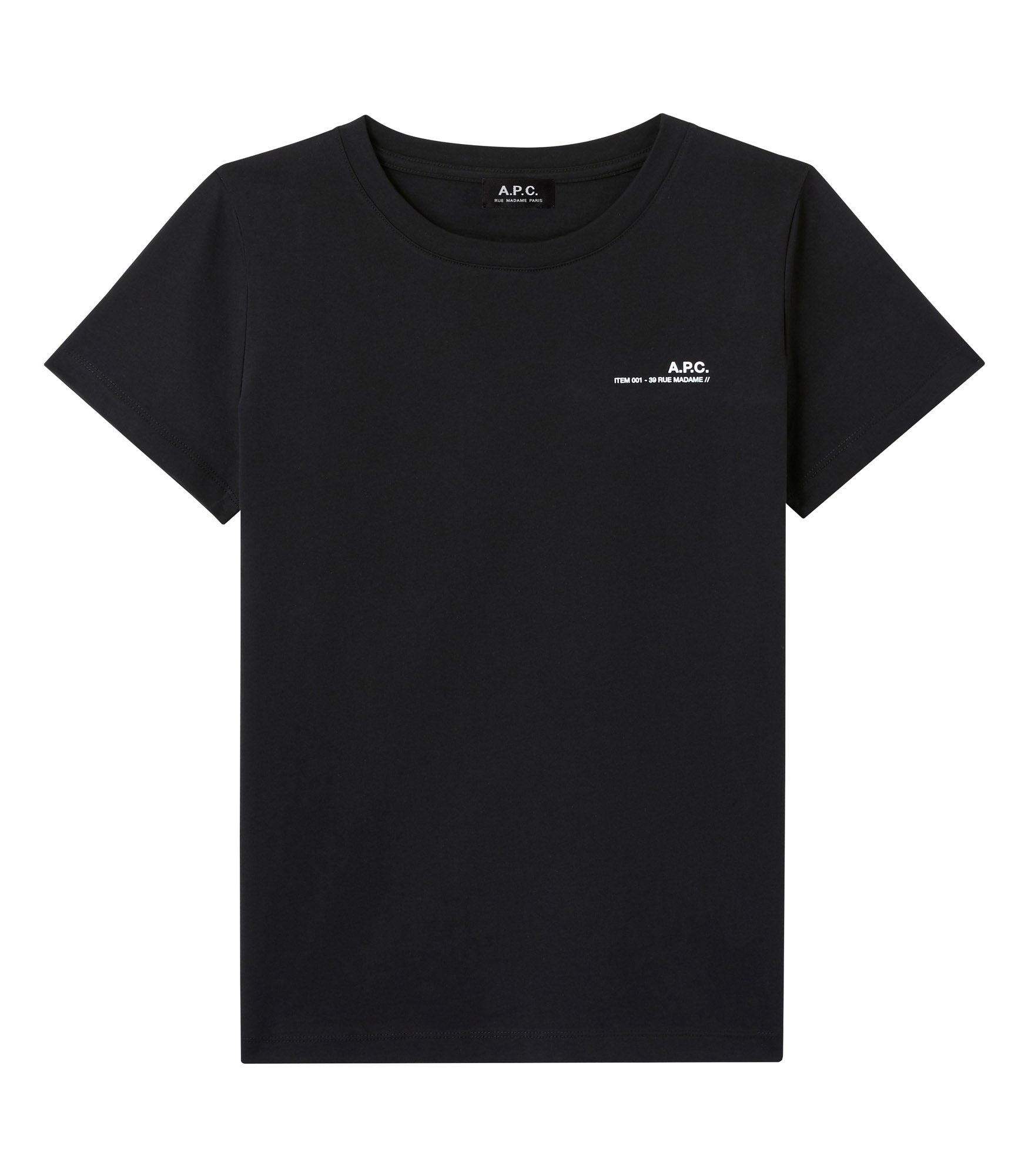 A.P.C. Women's T-shirt. - Straight cut. - Crew neck. - Small A.P.C. ITEM 0001 print logo. - Soft supple cotton. - 100% cotton derived from organic farming. Size Advice - Caroline is 5'10 tall and is wearing size S. Composition & Material - 100% cotton. - Portuguese material. - Made in Portugal. - Machine wash cold (86°C) inside-out.