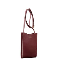 PRODUCT DETAILS A.P.C. neck pouch. - Adjustable leather strap to wear the pouch around the neck or across the chest. - One main compartment. - One interior pocket. - Silvertone engraved 'A.P.C. Rue Madame Paris' logo. FABRIC & CARE - 100% leather. - Spanish material. - Made in Morocco. - Care instructions: wipe with a soft, dry cloth. SIZE - Dimensions: 5.1" x 7.3" x 1.2"