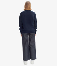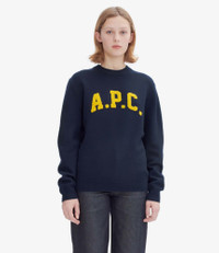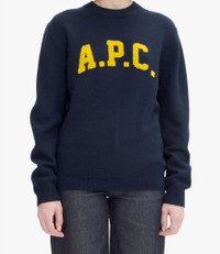 - Unisex model. - Soft warm and thick material. - Loose fit. - Crew neck. - Red chenille A.P.C. logo. Size Advice - Julie is 5'9 tall and is wearing size XS. - Unisex sizing. For women choose one size smaller than your usual size. Composition & Material - 100% wool. - Made in China. - Hand wash or delicate cycle.