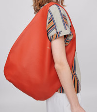 - Sewn from a single piece of leather. - Two large handles to carry the bag by hand or on the shoulder. - Embossed goldtone A.P.C. Rue Madame Paris logo. - Unlined. - Pair with the Demi-Lune cardholder . Size Advice - Dimensions: 41.5 x 36 cm. Composition & Material - 100% calfskin leather. - Spanish material. - Made in Morocco. - Care instructions: wipe with a soft dry cloth.