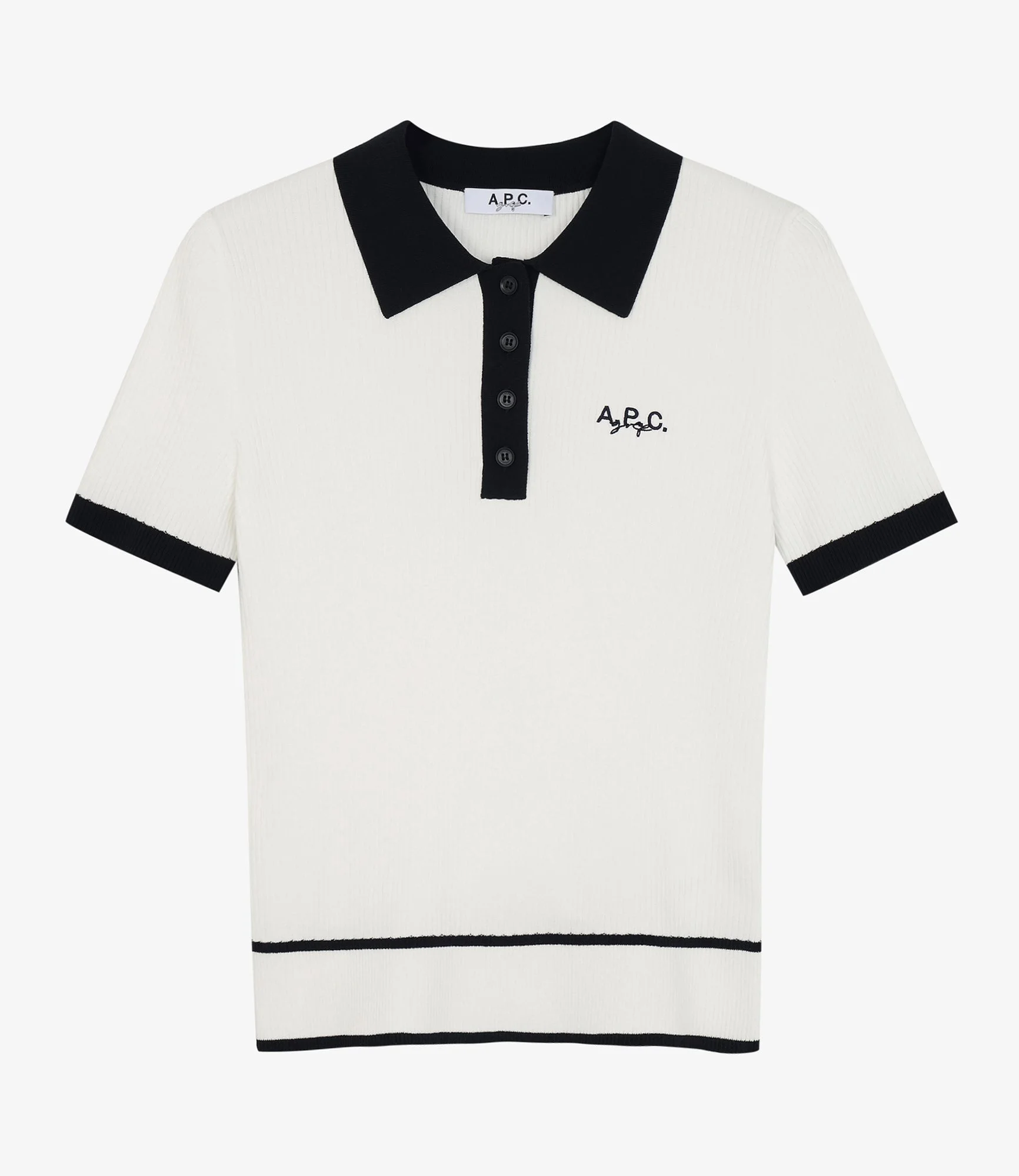 - Soft breathable knitted fabric. - Fitted cut. - Polo shirt collar with four buttons. - A.P.C. Golf logo embroidered over the heart. - Dark navy blue trim on sleeve ends and shirt hem. Size Advice - Angelina is 5'8 tall and is wearing size S. Composition & Material - 83% rayon. 17% polyester. - Made in South Korea. - Dry clean only.